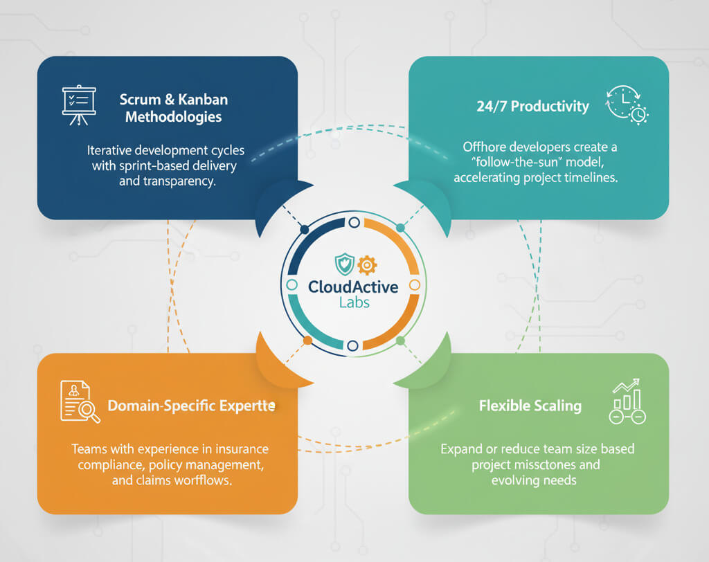 Insurance technology projects often require cross-functional expertise and rapid delivery. CloudActive Labs deploys remote agile teams that ensure: