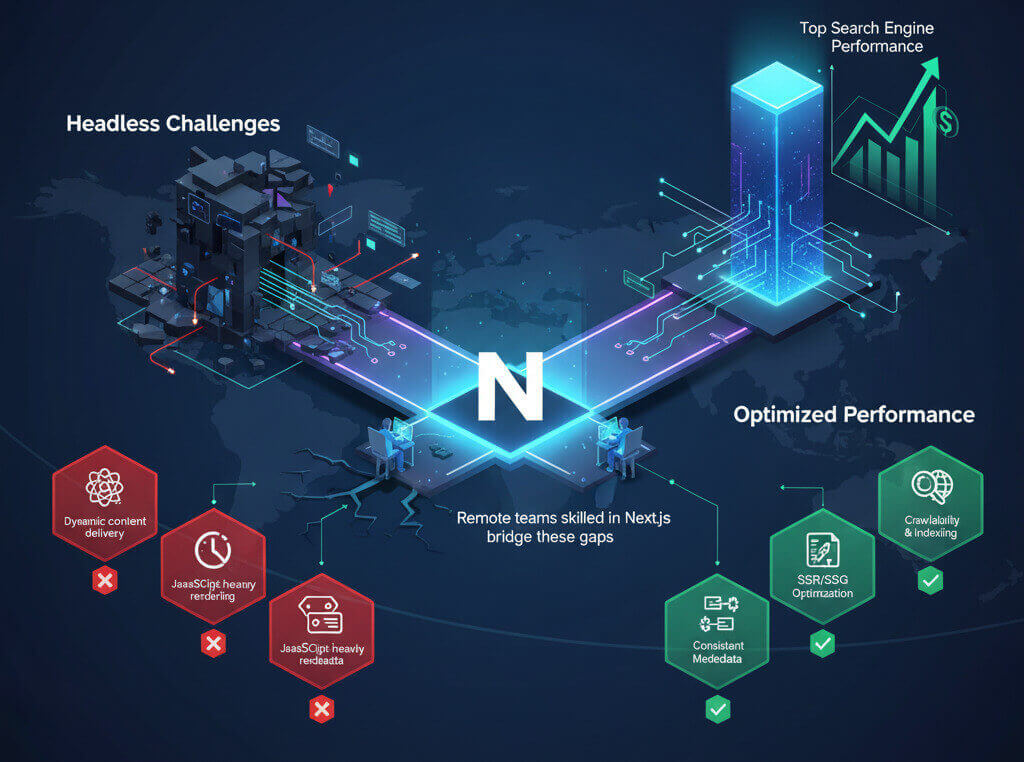 Remote teams skilled in Next.js and headless architecture can bridge these gaps, ensuring publishers maintain top search engine performance while benefiting from flexible content delivery.