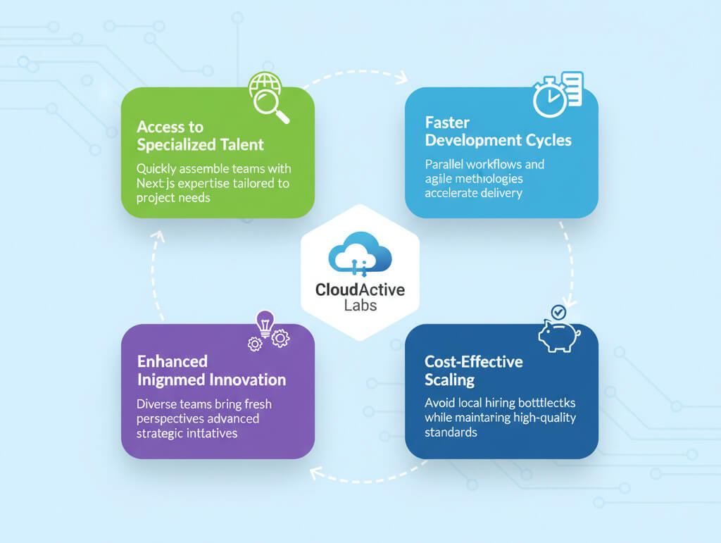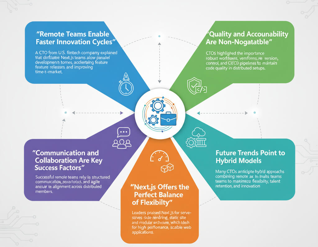 A CTO from a U.S. fintech company explained that distributed Next.js teams allow parallel development across time zones, accelerating feature releases and improving time-to-market.