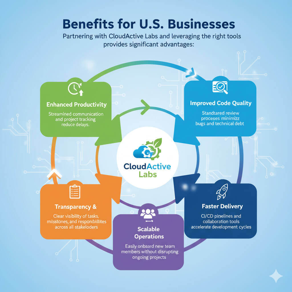 Successfully managing remote Node.js teams requires the right combination of expertise, processes, and tools. With CloudActive Labs, U.S. businesses gain dedicated remote Node.js teams supported by a robust ecosystem of collaboration, project management, and code review tools. This approach ensures seamless integration, faster delivery, and high-quality outcomes for modern web applications.