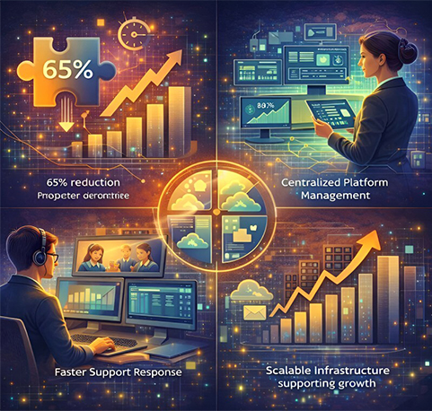 The client is a rapidly growing EdTech platform delivering digital learning experiences to students and educators across multiple regions. As user adoption accelerated, the platform’s IT environment struggled to keep pace. Frequent system outages, fragmented infrastructure, and limited IT support resources began impacting learning continuity and platform reliability.