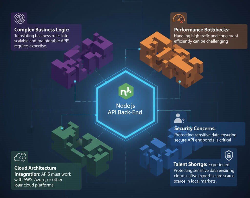 प्रतिभा की कमी: स्थानीय बाज़ारों में क्लाउड-नेटिव विशेषज्ञता वाले अनुभवी Node.js डेवलपर्स दुर्लभ हैं।