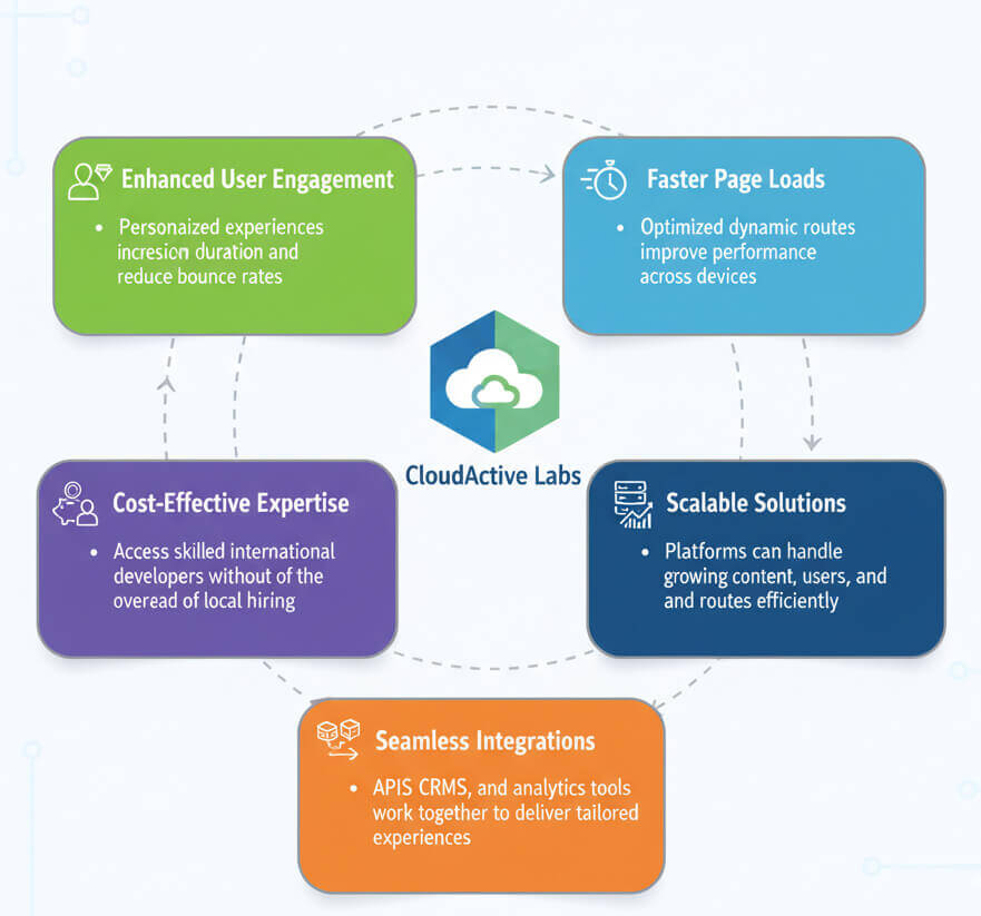 आज के प्रतिस्पर्धी डिजिटल परिदृश्य में, अमेरिकी व्यवसायों को उपयोगकर्ताओं को बनाए रखने और रूपांतरणों को बढ़ावा देने के लिए वैयक्तिकृत, तेज़ और आकर्षक अनुभव प्रदान करने की आवश्यकता है। स्थिर वेबसाइटें अक्सर उपयोगकर्ता के व्यवहार, स्थान या प्राथमिकताओं के आधार पर सामग्री को गतिशील रूप से अनुकूलित करने में विफल रहती हैं। क्लाउडएक्टिव लैब्स समर्पित दूरस्थ नेक्स्ट.जेएस विकास टीमें प्रदान करके संगठनों को इस चुनौती से निपटने में मदद करती है। हमारी टीमें डायनामिक रूटिंग, वैयक्तिकृत यूएक्स और स्केलेबल आर्किटेक्चर में विशेषज्ञता रखती हैं, जिससे व्यवसाय कुशलतापूर्वक अनुकूलित उपयोगकर्ता अनुभव प्रदान कर पाते हैं।