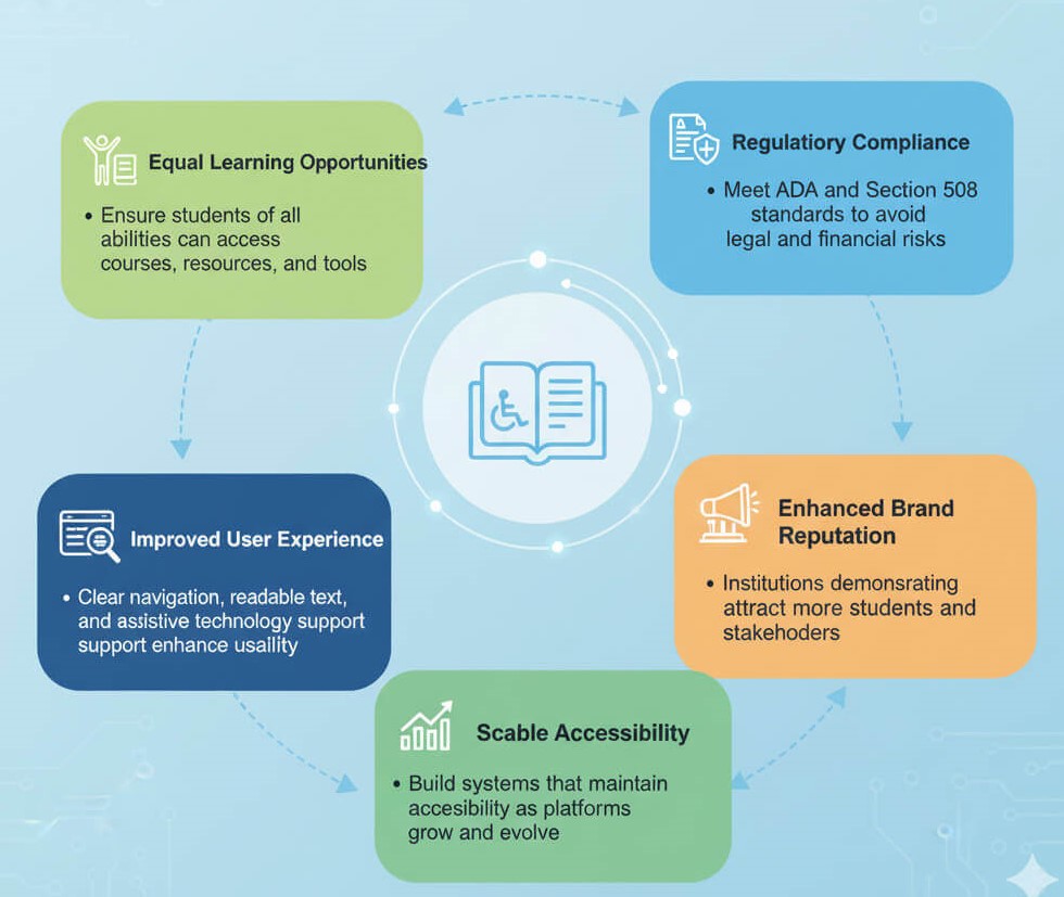 - बेहतर ब्रांड प्रतिष्ठा: सुलभता प्रदर्शित करने वाले संस्थान अधिक छात्रों और हितधारकों को आकर्षित करते हैं।