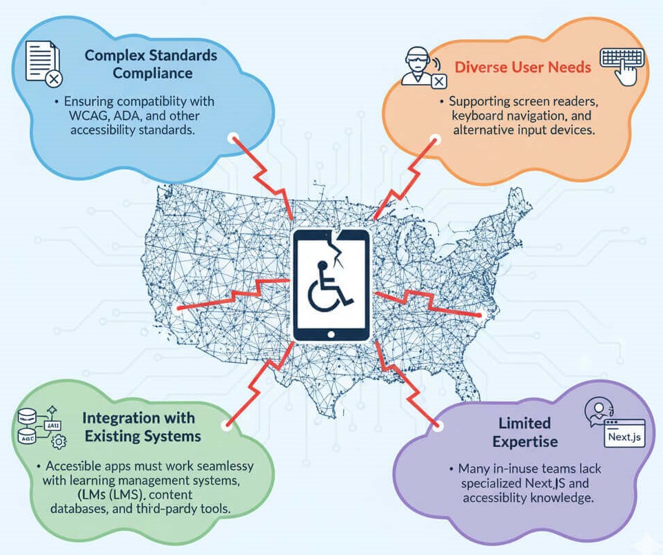 - सीमित विशेषज्ञता: कई आंतरिक टीमों के पास Next.js और सुलभता संबंधी विशिष्ट ज्ञान का अभाव है।